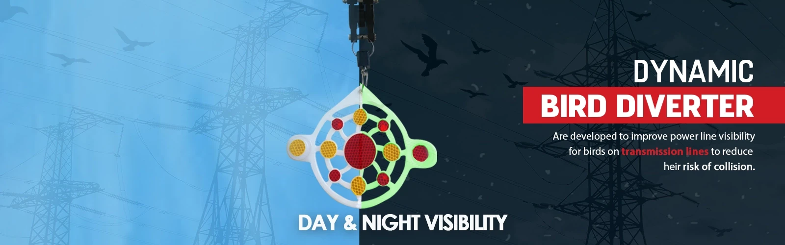 Dynamic Bird Diverter devices were developed to improve power line visibility for birds and reduce their risk of collision. however, differences in efficacy between types of devices, and in some cases conflicting results, place in question the ability of these devices to reduce collision risk to birds. dynamic bird diverter, identified as one of the measures to avoid the chances of collision of birds with transmission lines, and shall be placed in identified stretches as per the guidelines of the forest authority.